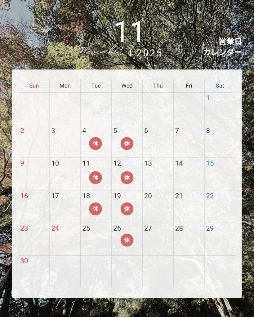 11月の定休日をお知らせいたします📢
